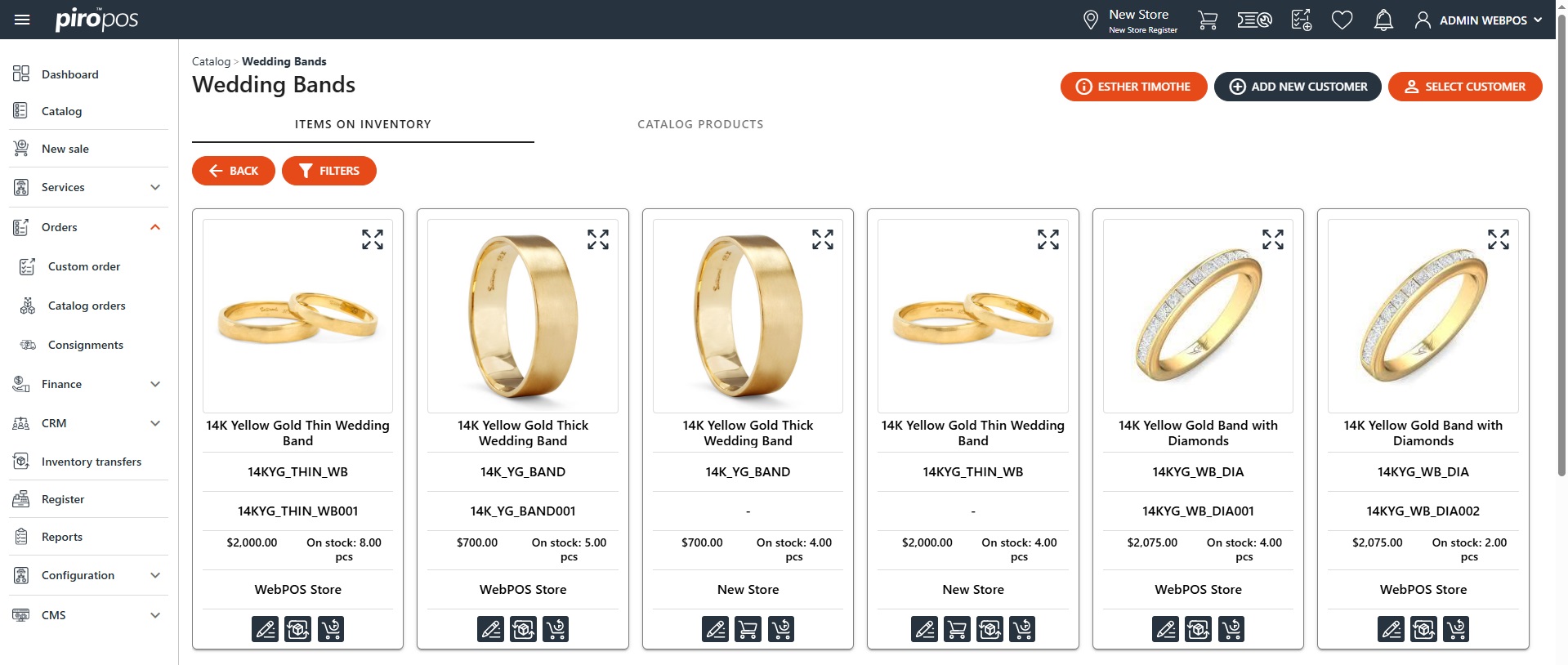 - ITEMS ON INVENTORY: the system displays all the inventory items (with SKUs) related to that category. These are ready-made items with fixed components, attributes, and prices.