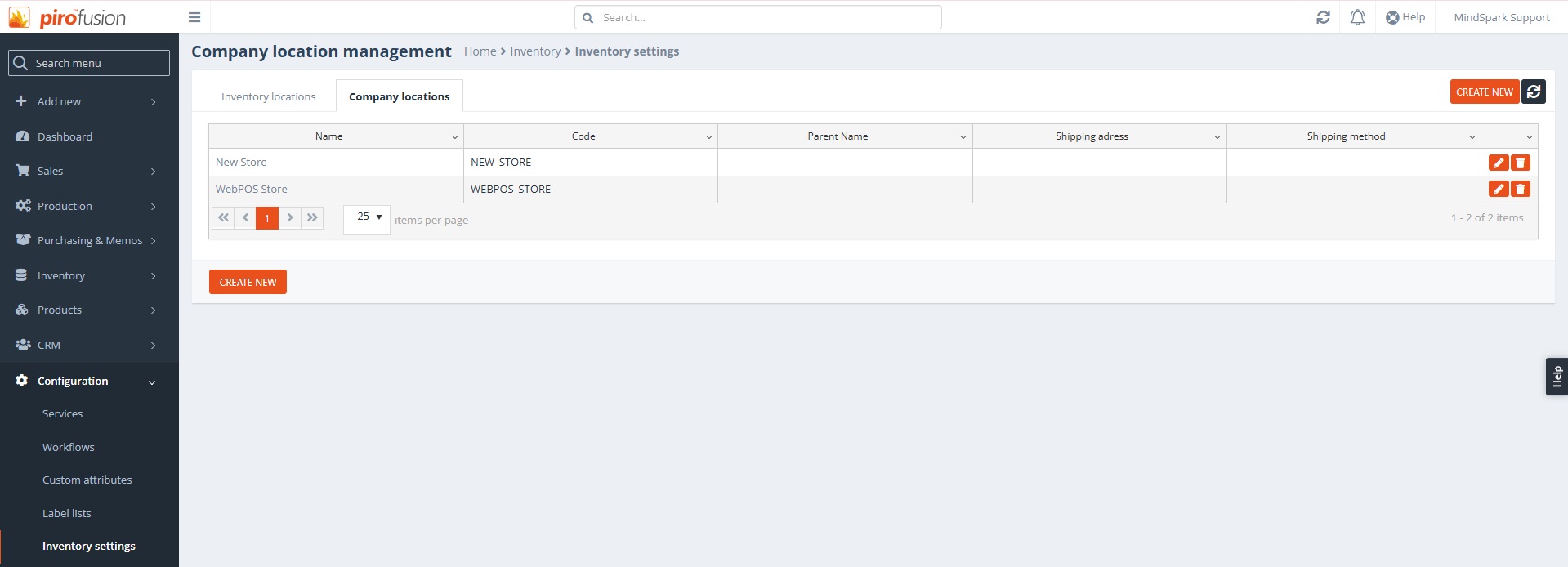 If you have more than one register in a location, you can easily add additional registers by navigating to Configuration → Inventory settings → Company locations tab. Click the Edit button for the selected location from here: