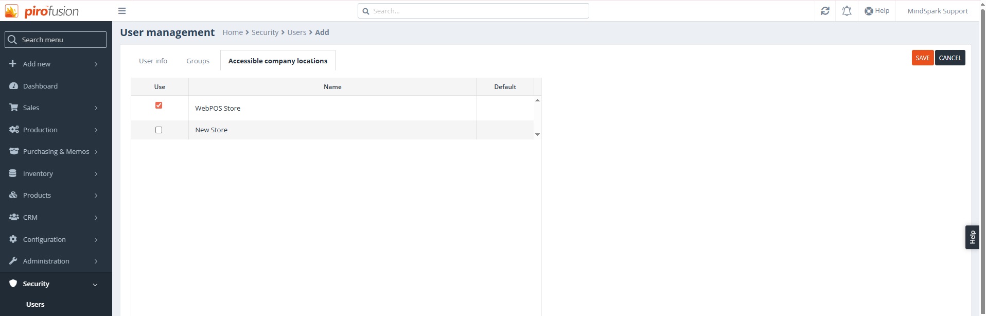 If you have multiple locations, please select the ones to which the POS users (e.g., sales assistants, shop administrators) will have access. Every time a user logs into the POS, the system will prompt them to select the location in which to log in. If there is only one company location, the POS will not ask the user to select a location.