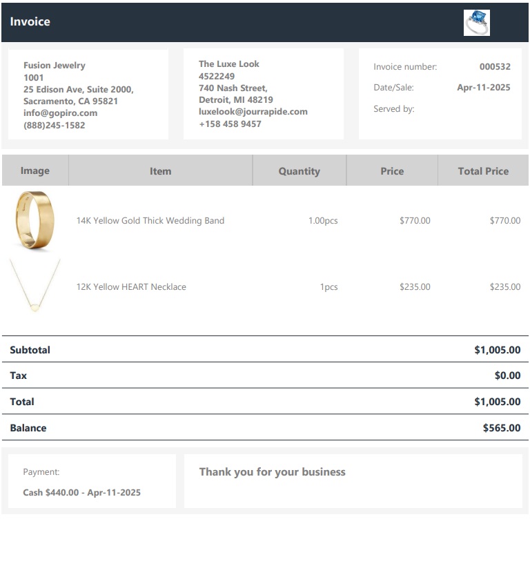 The fourth icon brings up the Receipt’s/Invoice’s printable preview: