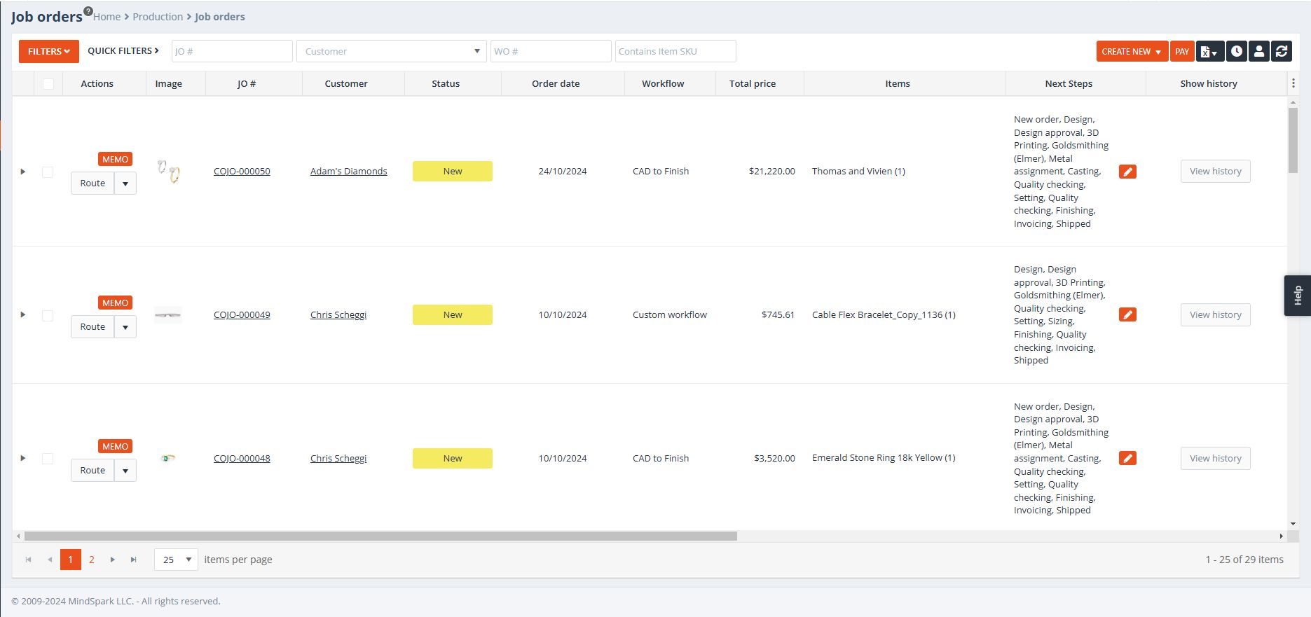 If your company handles custom items, custom jobs created in the PIRO Retail will appear in the back-office system having a New status:
