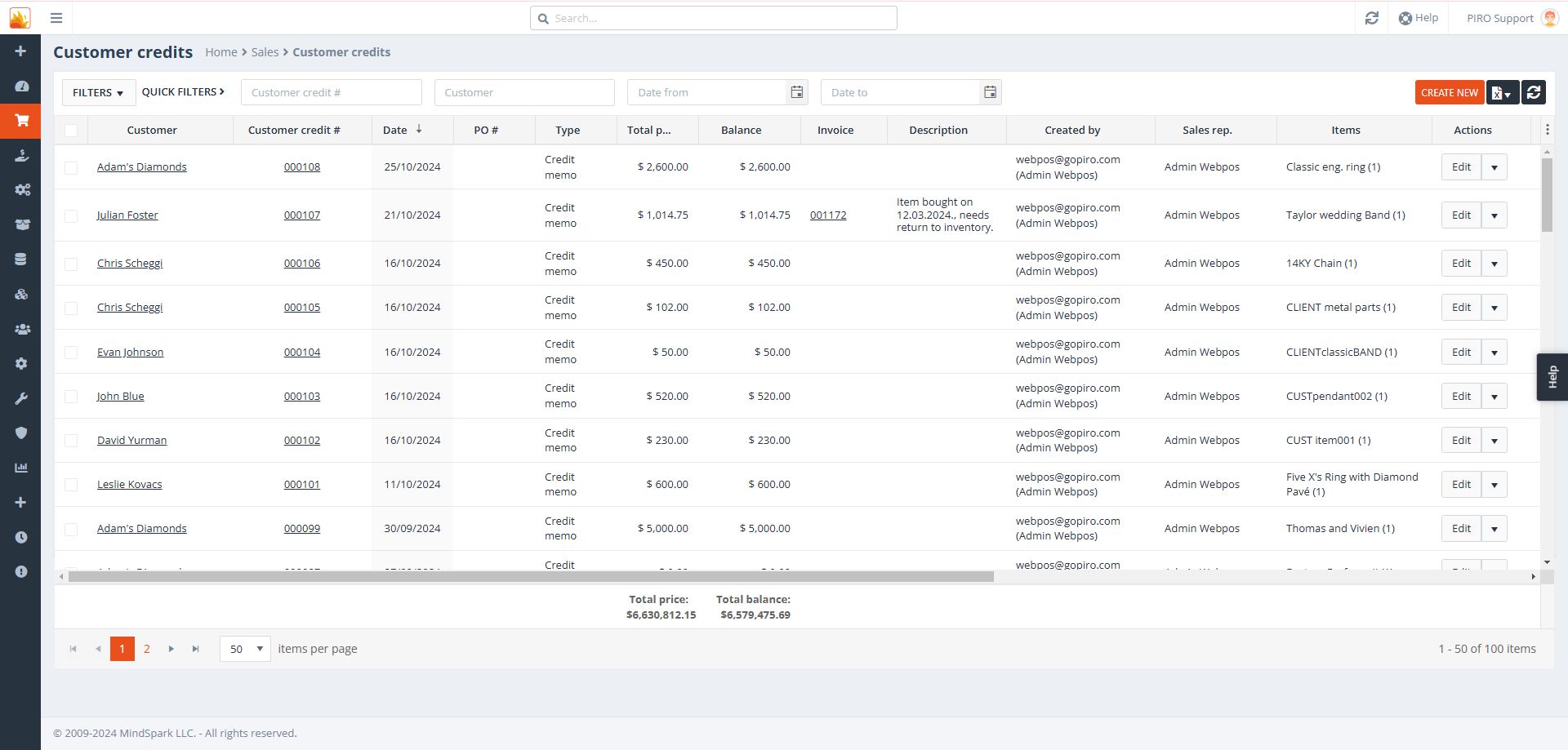 Access all previously created customer credits in the Back-office system by selecting ‘Customer Credits’ under the Sales module. To retrieve a list of all credit memos for a specific customer, enter their name in the search field.