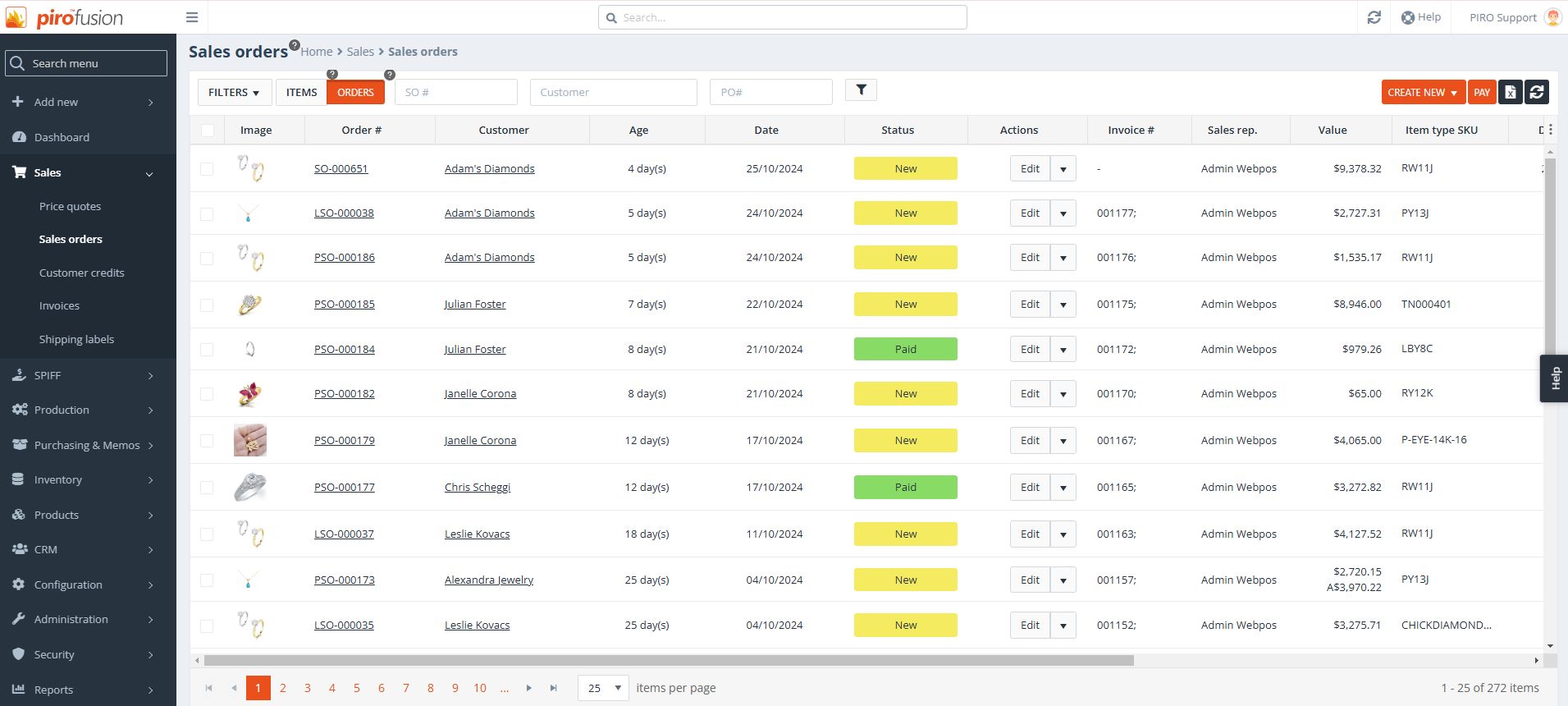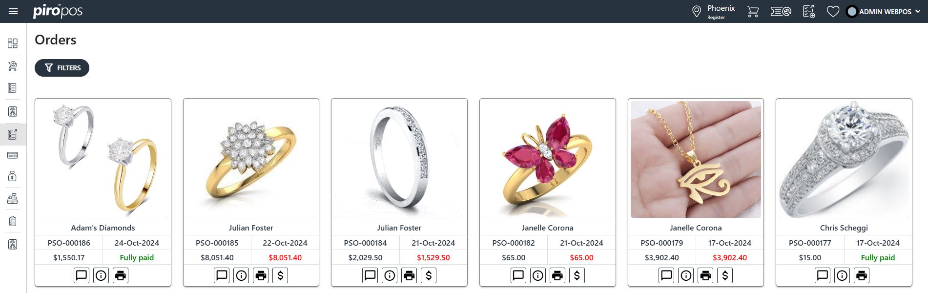 Here’s the layout of the PIRO Retail sales orders in the Backoffice system: