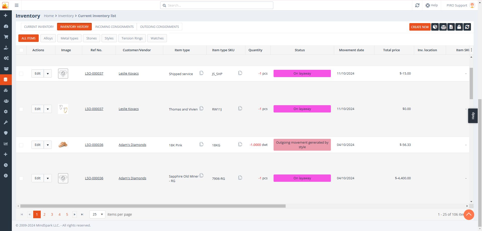 For layaway orders, the movement status will instead be marked as ‘On Layaway’: